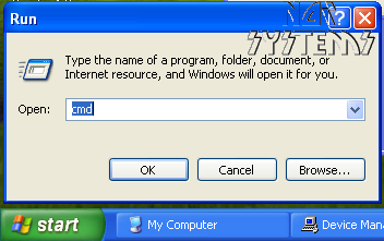 - With the scanner plugged to the PC Click Start and then click Run, in the Open field type CMD and then click OK